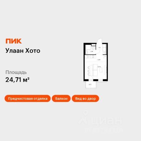 Продаётся квартира-студия площадью 19,48 кв.м на 7 этаже 9 этажного дома (Корпус 1.2.2, Секция 2) проекта ПИК Улаан Хото. Светлый просторный подъезд на уровне земли, функциональная планировка, большие окна, без отделки.