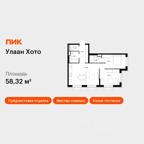 Продаётся 2-комн. квартира площадью 55,73 кв.м на 14 этаже 16 этажного дома (Корпус 2, Секция 6) проекта ПИК Улаан Хото. Светлый просторный подъезд на уровне земли, функциональная планировка, большие окна, предчистовая отделка. "Улаан Хото" — это уникальный и знаковый проект, расположенный в самом сердце Улан-Удэ. ПИК создаёт его с уважением к традициям, вдохновляясь культурой Бурятии. Мы учли все детали: от планирования территории до создания современной архитектуры с использованием традиционных элементов. ПИК создаст в Улан-Удэ будущую точку притяжения, которая подарит жителям новый стиль жизни — жилой квартал в центре города, где в шаговой доступности есть всё для комфорта, образования и культурного досуга. Помимо 15 жилых домов, в проекте появится два детских сада, школа, поликлиника и многоуровневые паркинги. Ещё на территории квартала появится обновлённый технопарк "Кванториум", который объединит молодые таланты в сфере высоких технологий. Вдоль "Улаан Хото" протянется прогулочный бульвар с буддийской ступой. Он соединит Национальный музей и театр "Байкал", которые будут построены в национальном стиле с использованием архитектурных элементов и цветов, отражающих культуру Бурятии. Кроме того, ПИК отреставрирует старинные деревянные дома, которые признаны объектами культурного наследия, и вдохнёт в них новую жизнь. Из окон квартир, расположенных на верхних этажах, будет открываться панорамный вид на город и живописный пейзаж реки. Мы создадим максимум комфорта для жителей. Во дворах, свободных от машин, появятся приватные пространства для игры, спорта и спокойного отдыха. А на первых этажах расположатся коммерческие помещения, где откроются кафе и рестораны. Здесь можно будет приятно провести время с семьёй или встретиться с друзьями. Артикул 993200 Купить 2-комнатную квартиру в новостройке в республике Бурятия.