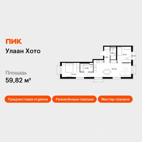 Продаётся 2-комнатная квартира в строящемся доме (Дом 4), срок сдачи: IV-кв. 2026, общей площадью 60.78 кв.м., на 1 этаже. Новый жилой комплекс "SMIT-квартал в 105 кв" от группы компаний "СмитИнвест" расположен по адресу: г. Улан-Удэ, в мкр. 105-й.
