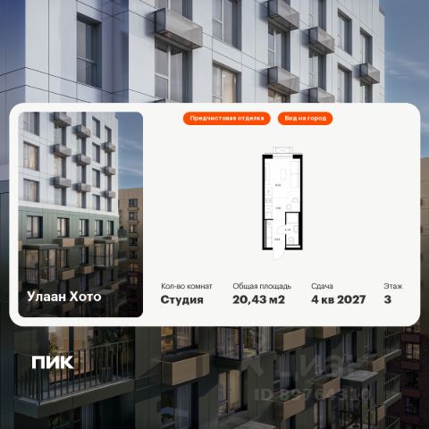 Продаётся квартира-студия площадью 23,96 кв.м на 14 этаже 16 этажного дома (Корпус 2, Секция 6) проекта ПИК Улаан Хото. Светлый просторный подъезд на уровне земли, функциональная планировка, большие окна, предчистовая отделка. "Улаан Хото" — это уникальный и знаковый проект, расположенный в самом сердце Улан-Удэ. ПИК создаёт его с уважением к традициям, вдохновляясь культурой Бурятии. Мы учли все детали: от планирования территории до создания современной архитектуры с использованием традиционных элементов. ПИК создаст в Улан-Удэ будущую точку притяжения, которая подарит жителям новый стиль жизни — жилой квартал в центре города, где в шаговой доступности есть всё для комфорта, образования и культурного досуга. Помимо 15 жилых домов, в проекте появится два детских сада, школа, поликлиника и многоуровневые паркинги. Ещё на территории квартала появится обновлённый технопарк "Кванториум", который объединит молодые таланты в сфере высоких технологий. Вдоль "Улаан Хото" протянется прогулочный бульвар с буддийской ступой. Он соединит Национальный музей и театр "Байкал", которые будут построены в национальном стиле с использованием архитектурных элементов и цветов, отражающих культуру Бурятии. Кроме того, ПИК отреставрирует старинные деревянные дома, которые признаны объектами культурного наследия, и вдохнёт в них новую жизнь. Из окон квартир, расположенных на верхних этажах, будет открываться панорамный вид на город и живописный пейзаж реки. Мы создадим максимум комфорта для жителей. Во дворах, свободных от машин, появятся приватные пространства для игры, спорта и спокойного отдыха. А на первых этажах расположатся коммерческие помещения, где откроются кафе и рестораны. Здесь можно будет приятно провести время с семьёй или встретиться с друзьями. Артикул 993212