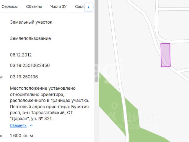 Код объекта: 2034745. Идеальное место для строительства дома по доступной цене! Земельный участок в СТ "Дархан", Республика Бурятия, Тарбагатайский район, идеально подходит для индивидуального жилищного строительства. Участок площадью 15,95 соток находится всего в 13 километрах от города, что обеспечивает удобный доступ к городской инфраструктуре, но при этом позволяет наслаждаться спокойствием и свежим воздухом, природой за городом (экологически чистый район). Несмотря на то что подъезд к участку осуществляется по грунтовой дороге, его расположение делает его привлекательным для строительства. Этот участок — отличная возможность для молодых специалистов, семей с детьми и пар без детей, которые хотят построить свой дом вдали от городской суеты, но не терять связь с городом. Также это может быть перспективной инвестицией для тех, кто хочет вложить средства в недвижимость с потенциалом роста стоимости. Юридически чист, документы готовы к продаже. Не упустите шанс стать владельцем земельного участка по выгодной цене! Для реальных покупателей имеется хороший торг, который оговаривается при встрече! Звоните и предлагайте свою цену.