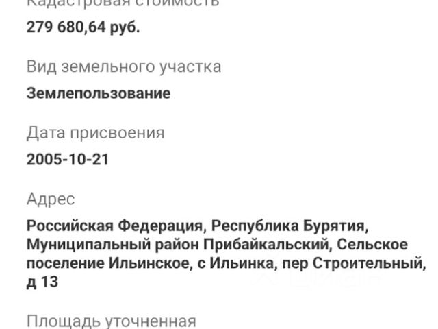 Предлагаем вашему вниманию земельный участок в с. Горячинск вблизи озера Байкал Участок очень удачно расположен вблизи лесного массива в уединенном месте. Общая площадь участка 11,2 сотки, огорожен, размежеван на два. Назначение: ижс и для предпринимательства. Идеально подойдет как для бизнеса, так и для личного использования, постоянного проживания и отдыха. Участок ровный, без уклонов, правильной прямоугольной формы, освобожден от деревьев. Электричество подключено 380В, 15кВт. На участке имеется капитальный брусовой дом 6*4 м. 1 взрослый собственник. Без каких-либо обременений и долгов! Подойдет под строительство по льготным программам. Кадастровый номер: 03:16:050150:227, 03:16:050150:228 ====== Добавьте объявление в избранное, чтобы не потерять. Если не дозвонитесь - пишите сообщение, отвечаю оперативно. Звоните с 09 до 21 в любой день. Купить участок под индивидуальное жилое строительство с коммуникациями в Прибайкальском районе республики Бурятия.