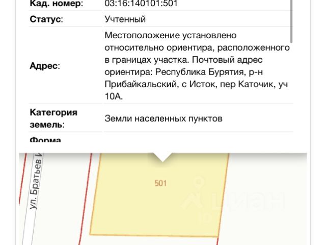 Предлагаем вашему вниманию земельный участок в с. Горячинск вблизи озера Байкал Участок очень удачно расположен вблизи лесного массива в уединенном месте. Общая площадь участка 11,2 сотки, огорожен, размежеван на два. Назначение: ижс и для предпринимательства. Идеально подойдет как для бизнеса, так и для личного использования, постоянного проживания и отдыха. Участок ровный, без уклонов, правильной прямоугольной формы, освобожден от деревьев. Электричество подключено 380В, 15кВт. На участке имеется капитальный брусовой дом 6*4 м. 1 взрослый собственник. Без каких-либо обременений и долгов! Подойдет под строительство по льготным программам. Кадастровый номер: 03:16:050150:227, 03:16:050150:228 ====== Добавьте объявление в избранное, чтобы не потерять. Если не дозвонитесь - пишите сообщение, отвечаю оперативно. Звоните с 09 до 21 в любой день.