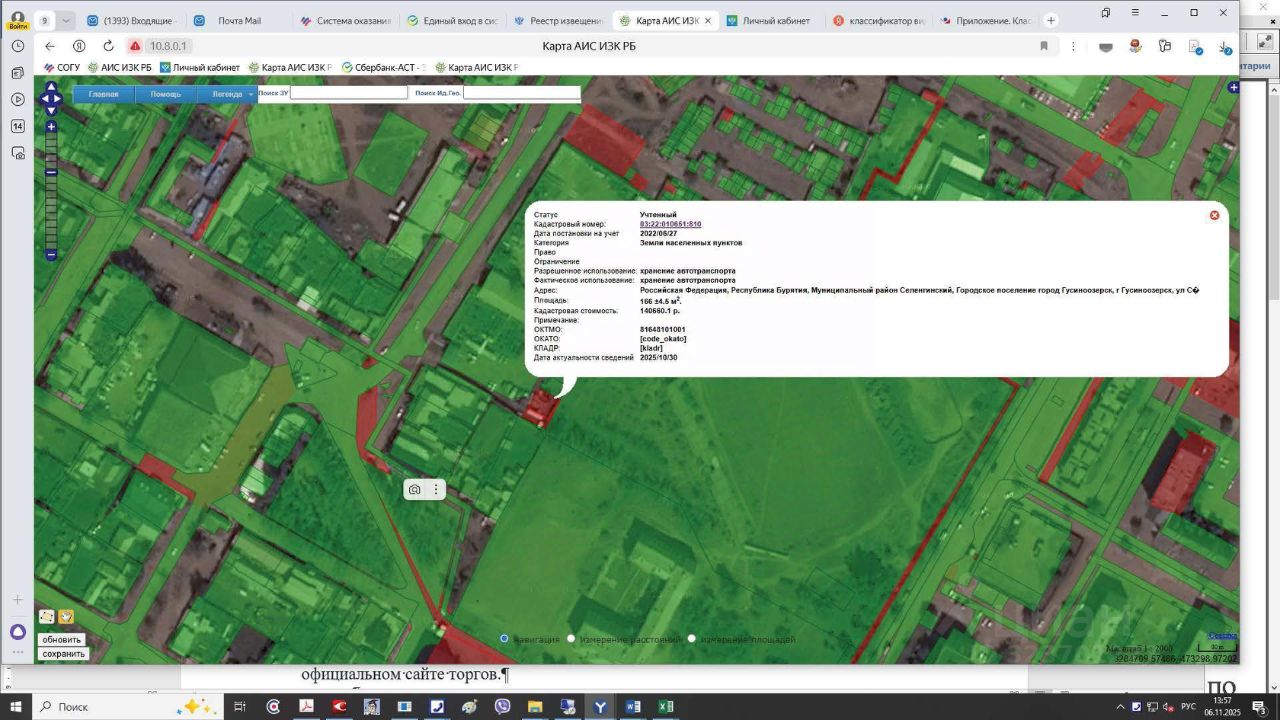 Земельный участок с кадастровым номером 03:22:010651:810 площадь 166 по адресу Российская Федерация, Республика Бурятия, Муниципальный район Селенгинский, Городское поселение город Гусиноозерск, г Гусиноозерск, ул Спортивная, уч 34/4