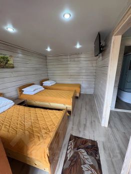 Двухэтажный дом с четырьмя трехместными номерами по адресу Аршан, улица Братьев Домышевых, 46. Дом принимает гостей с мая по октябрь.