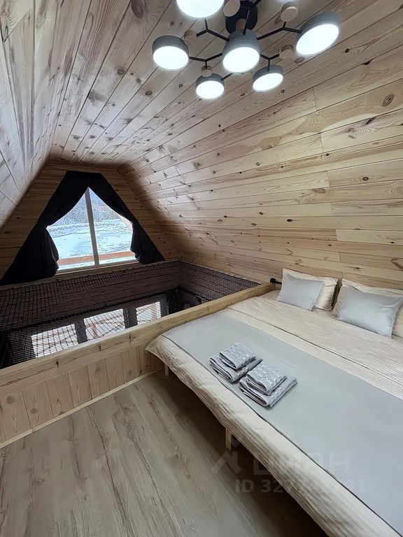 Просторная спальня: на втором этаже вас ждет комфортная большая двуспальная кровать.