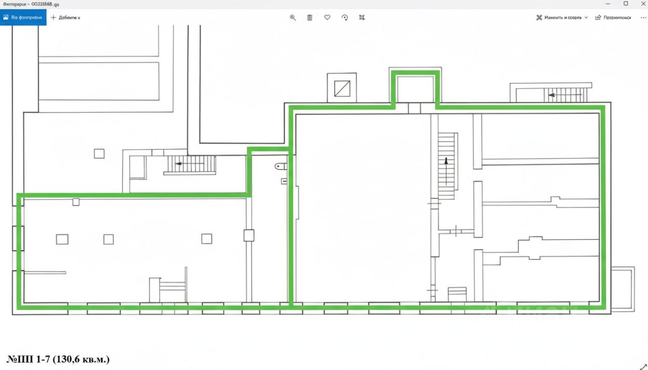 На планировке смотрите помещение слева, справа к нему примыкает еще одно помещение 221 м2, тоже можно рассмотреть продажу.