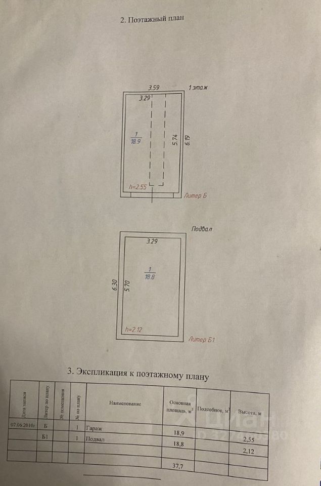 1 уровень 18,9 кв.м., высота 2,55, подвал 18,8 кв.м., высота 2,12. Электричество есть. В собственности.