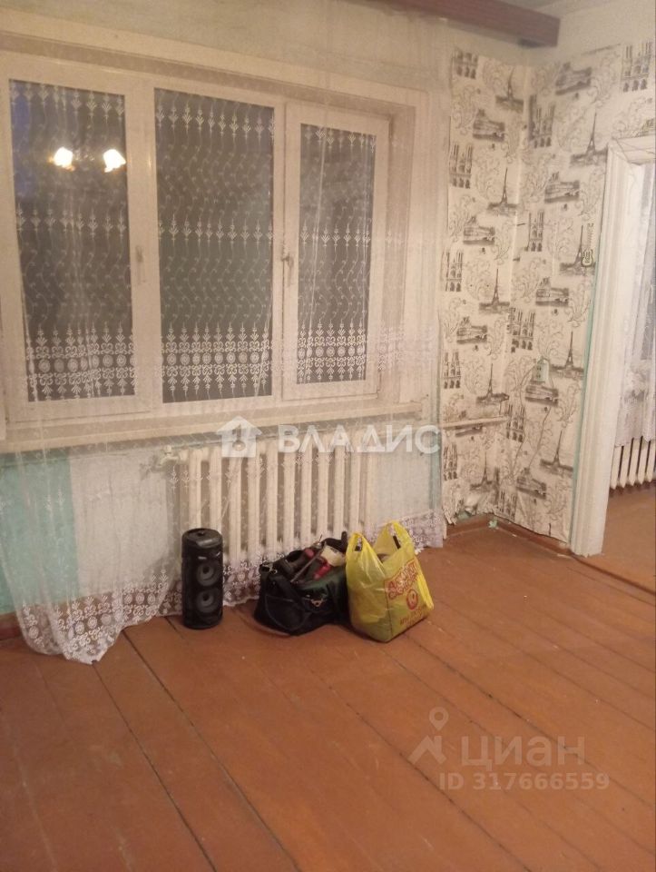 Квартира расположена на втором этаже двухэтажного деревянного дома. Из окон открывается вид во двор. Общая площадь квартиры составляет 37,7 кв. м, площадь кухни — 5 кв. м.