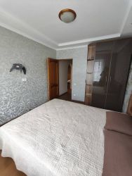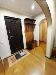 Неугловая, очень ухоженная, теплая. установлен домофон, лоджия 9 метров зарешечена, окна выходят на южную сторону. Комнаты раздельные, большие, сан/узел раздельный, кухня площадью 7, 7 кв.м. Есть большая гардеробная.
