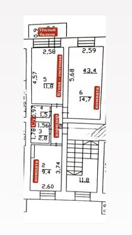 2 полноценные комнаты (14,7 кв м и 9,4 кв м )