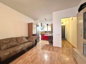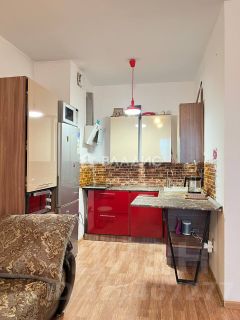 Квартира-студия общей площадью 35 кв. м с косметическим ремонтом, встроенной кухней и техникой.
