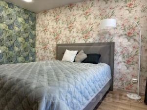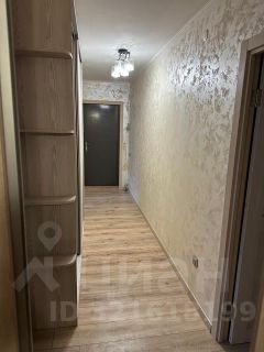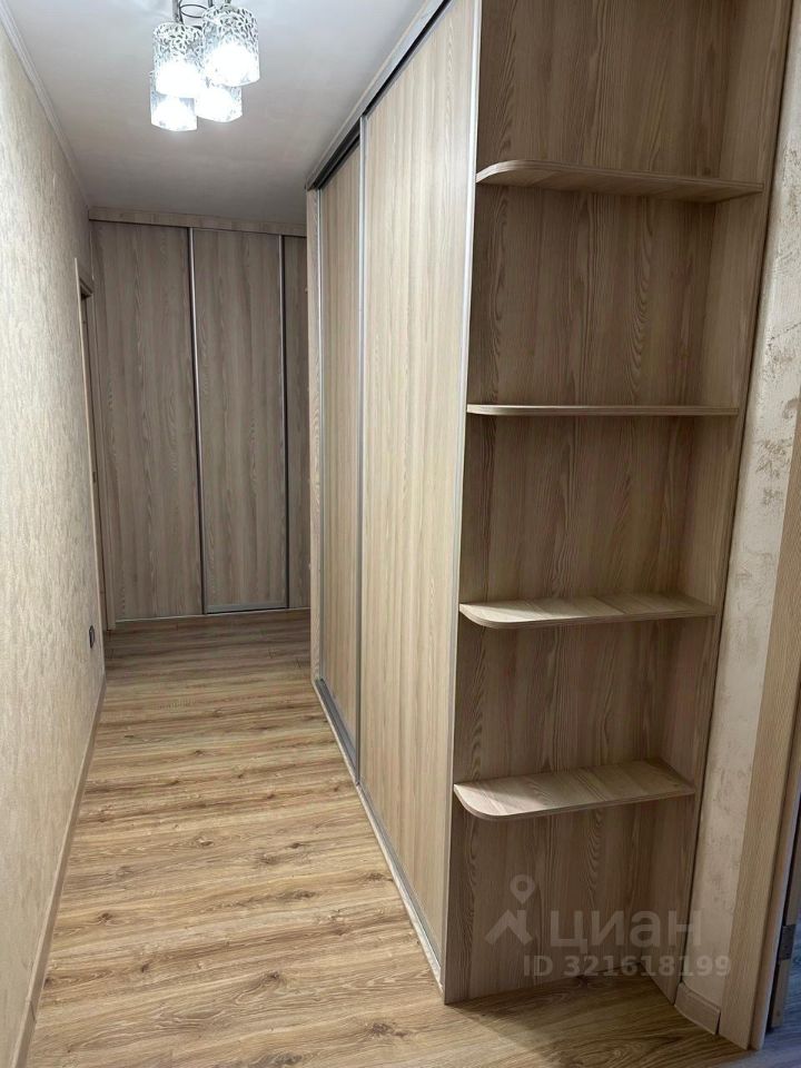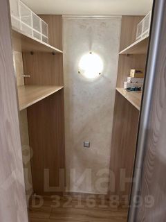 В коридоре огромный шкаф купе и гардеробная. Комната с балконом: кровать, комод, торшер.