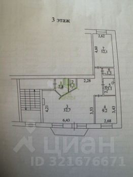 Площадь квapтиpы 62,3 кв.м. Удобный 3й этаж из 5ти.
