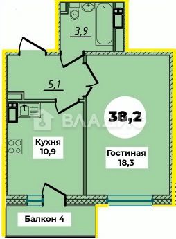 Площадь: Общая площадь квартиры с балконом составляет 39,4 кв. м, жилая площадь — 18,3 кв. м.