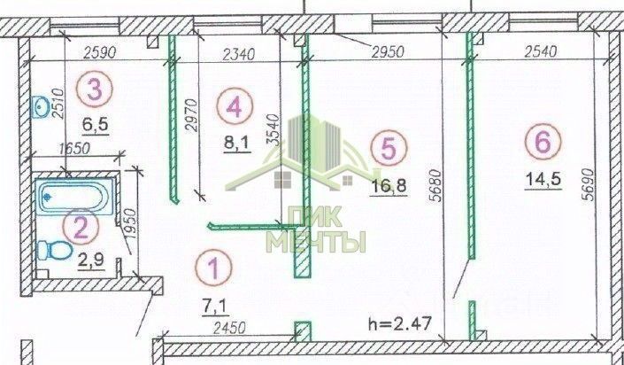 6,5 м²