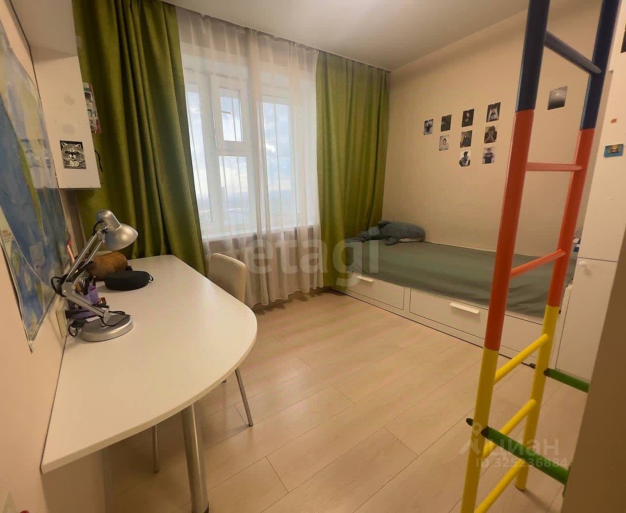 При продаже остается встроенный кухонный гарнитур с вытяжкой, 2 встроенных шкафа (в гостиной и прихожей), стол и шкаф в детской.