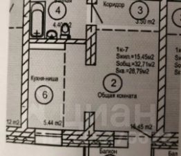 1-комн. квартира, 32,7 м²