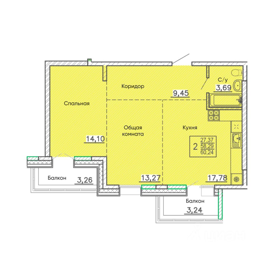Общая площадь60,24 м²