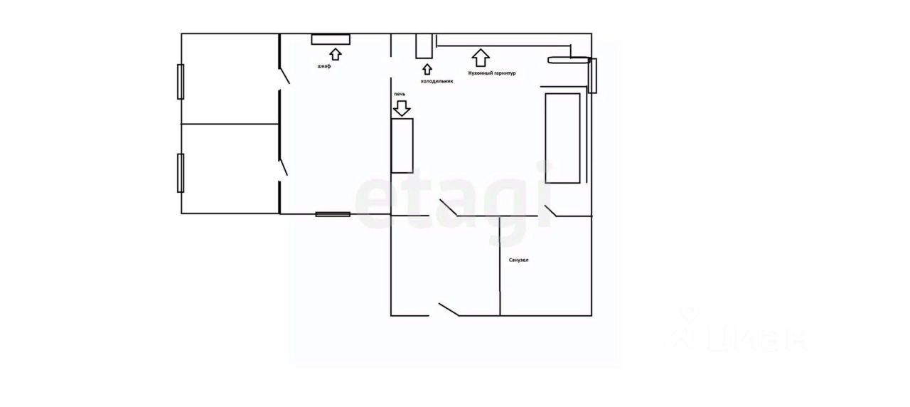 Есть гардеробная, кухонный гарнитур с барной стойкой остаётся покупателям, газовая печь с баллоном тоже.