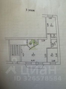 Площадь квapтиpы 62,3 кв.м. Удобный 3й этаж из 5ти.
