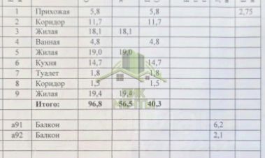 балкона-лоджия - 6,2 кв.м.