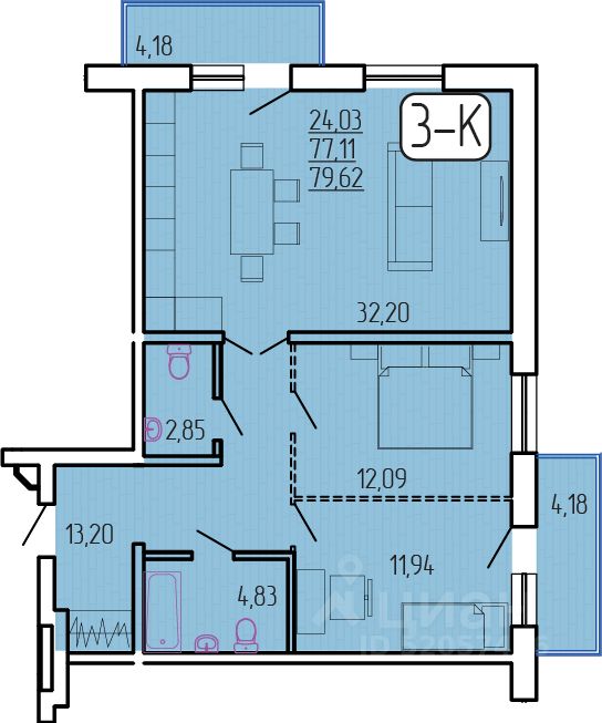 Продаётся 3-комнатная квартира в строящемся доме (Дом 3), срок сдачи: III-кв. 2027, общей площадью 79.62 кв.м., на 2 этаже. Новый жилой комплекс "SMIT-квартал в 129 квартале" от Специализированного застройщика "СмитИнвест" расположен по адресу: г. Улан-Удэ по ул. им. Д.Ц. Дашиева.