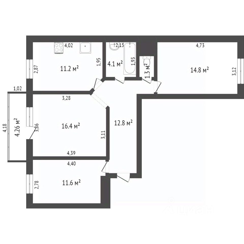 Планировка функциональна и позволяет при необходимости организовать четвертую комнату.