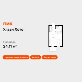 Продаётся квартира-студия площадью 24,11 кв.м на 11 этаже 12 этажного дома (Корпус 2, Секция 4) проекта ПИК Улаан Хото. Светлый просторный подъезд на уровне земли, функциональная планировка, большие окна, предчистовая отделка.