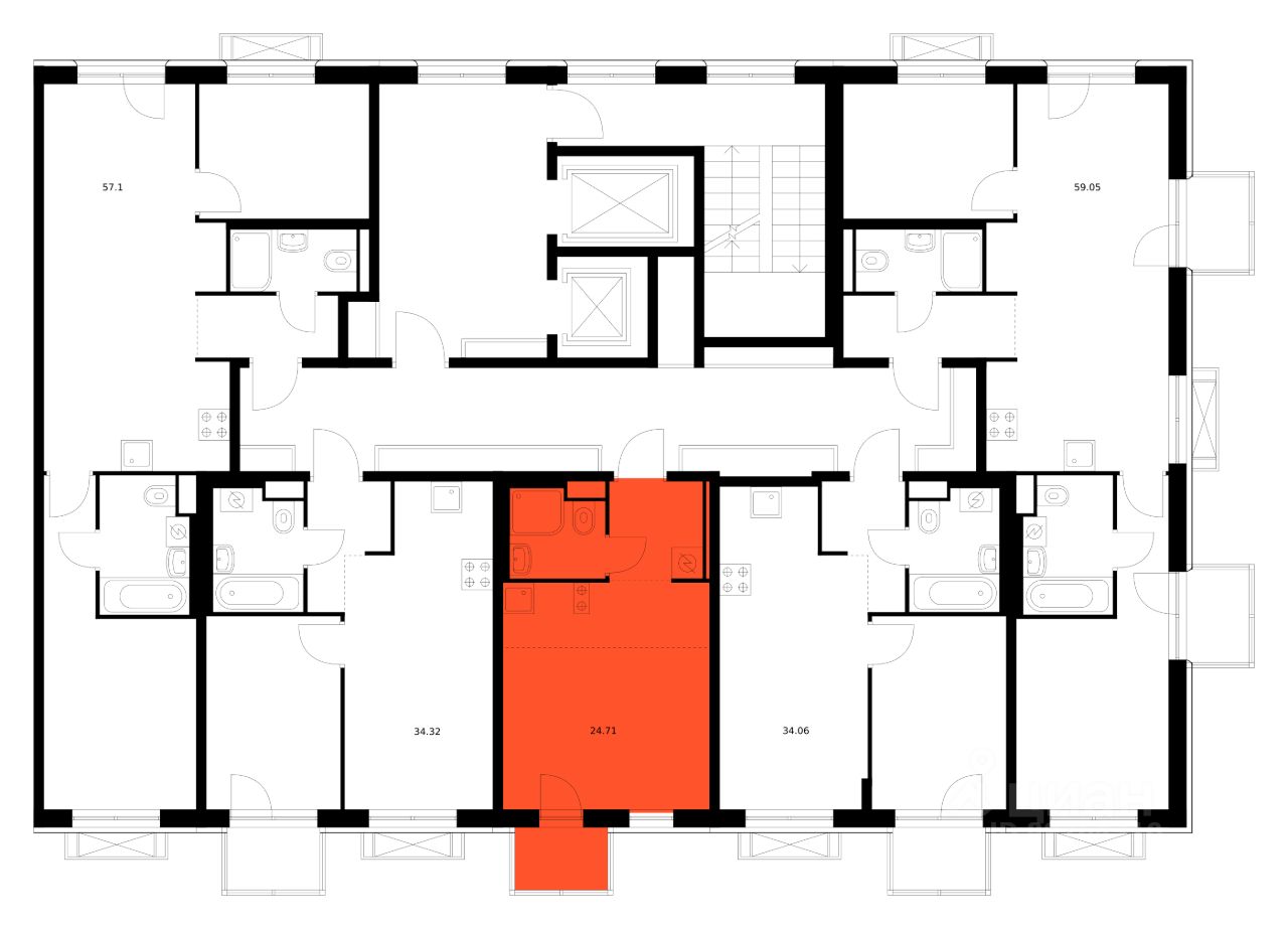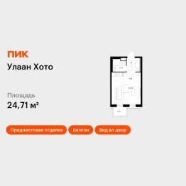 Продаётся квартира-студия площадью 24,71 кв.м на 13 этаже 14 этажного дома (Корпус 2, Секция 5) проекта ПИК Улаан Хото. Светлый просторный подъезд на уровне земли, функциональная планировка, большие окна, предчистовая отделка.