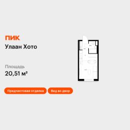 Продаётся квартира-студия площадью 20,51 кв.м на 10 этаже 16 этажного дома (Корпус 2, Секция 6) проекта ПИК Улаан Хото. Светлый просторный подъезд на уровне земли, функциональная планировка, большие окна, предчистовая отделка.