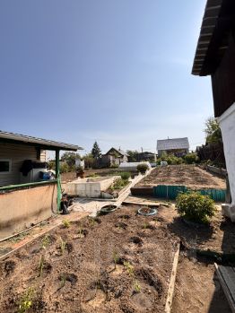 На участке: строение (можно оборудовать под баню), бассейн (требует ремонта), дровник, туалет, сад-огород с посадками (вишни, смородины, малины, ранет и пр.).