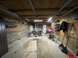 - Гараж с автоматическими воротами совмещен с котельной, где машине будет очень тепло даже в самые стойкие морозы. Пол залит бетоном, кроме места для смотровой ямы.