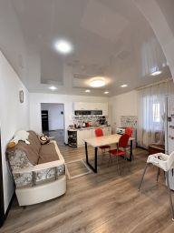Дом 126кв.м, 4 спальни, гостиная, большая кухня, сан.узел раздельный в доме. Сделан качественный ремонт, натяжные потолки с точечным освещением в каждой комнате, на полу ламинат 33класса. Окна установлены пластиковые пятикамерные.