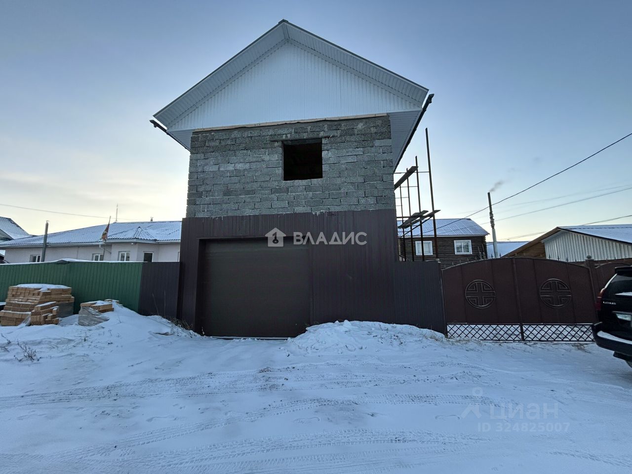 Дом построен в 2015 году, его общая площадь составляет 20 квадратных метров (остальная часть дома не зарегистрирована). Дом двухэтажный, 1 этаж брусовой, 2 этаж - арболит, перекрытия железобетонные. На участке есть гараж и баня (не зарегистрированы).
