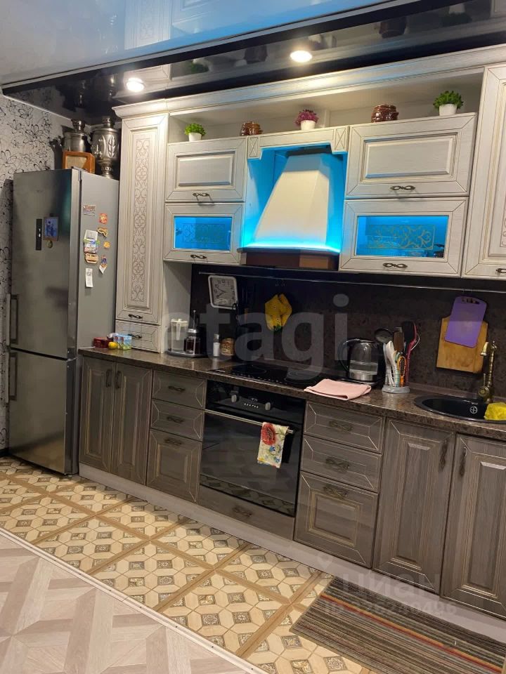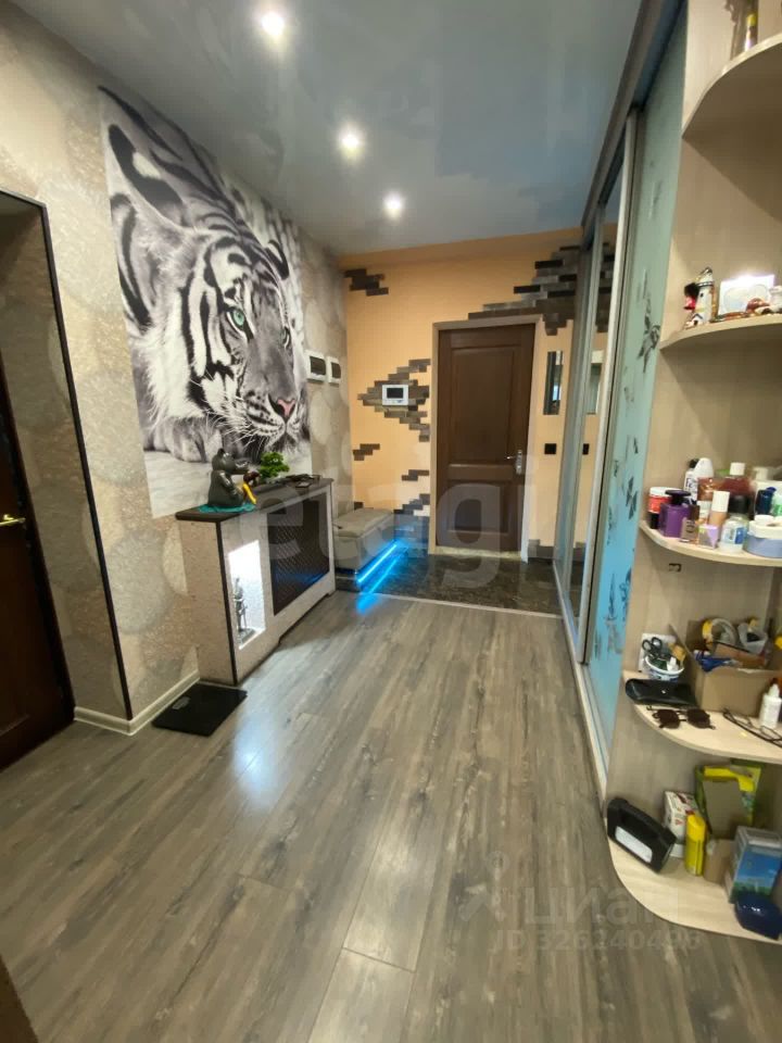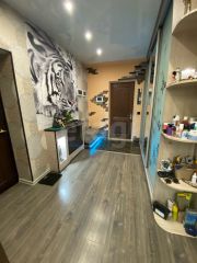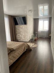Во всех комнатах лежит ламинат, в санузле под плиткой теплый пол, работающий от отопления, натяжные потолки.