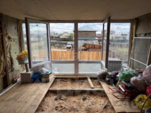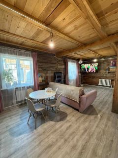 Дом 8*10, сосна, лиственница. (зарегистрирован 1 этаж. Возможно зарегистрировать 2 этаж. Помещение 40 квадратных метров полностью пригодно для жилья. Панорамное окно. Высота потолков 2,80, второй этаж - 2,10. Туалет с новым ремонтом. в доме и на улице.