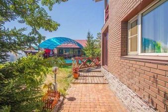 При продаже остается вся встроенная мебель. Участок ровный, с насаждениями, с крытым бассейном. На участке помимо дома расположены баня, 2 теплицы, детская игровая, летняя кухня и 2 теплых гаража, один на 2 машины и на 1 машину , который прилегает к дому
