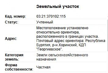 Адрес: Республика Бурятия, Хоринский р-н, Хоринский р-н, КДП "Георгиевское",м. Хара-Нарган, уч. 2