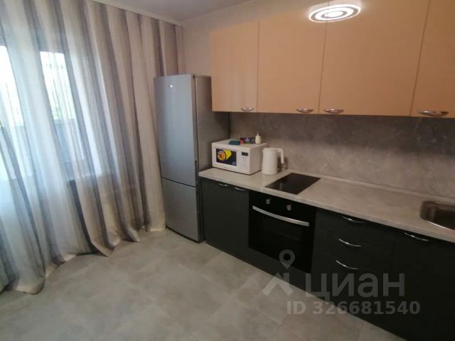 В квартире имеется кухонный гарнитур, кухонный стол и 2 стула, чайник, микроволновая печь, плита, холодильник, кухонные принадлежности (вилки, ложки, кружки, тарелки, нож, сковородка, кастрюля), стиральная машина.