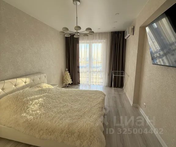 Для сладких снов и вечеров просмотра фильмов уютная спальня с большим телевизором смарт-ТВ 55 дюймов.