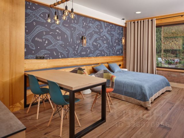 Двуспальная кровать, туалетный столик, шкаф для одежды, индивидуальное освещение, смарт-ТВ (подписка Яндекс Кинопоиск, пакет каналов и другие приложения), Wi-Fi, обогреватель, постельное бельё, полотенца.